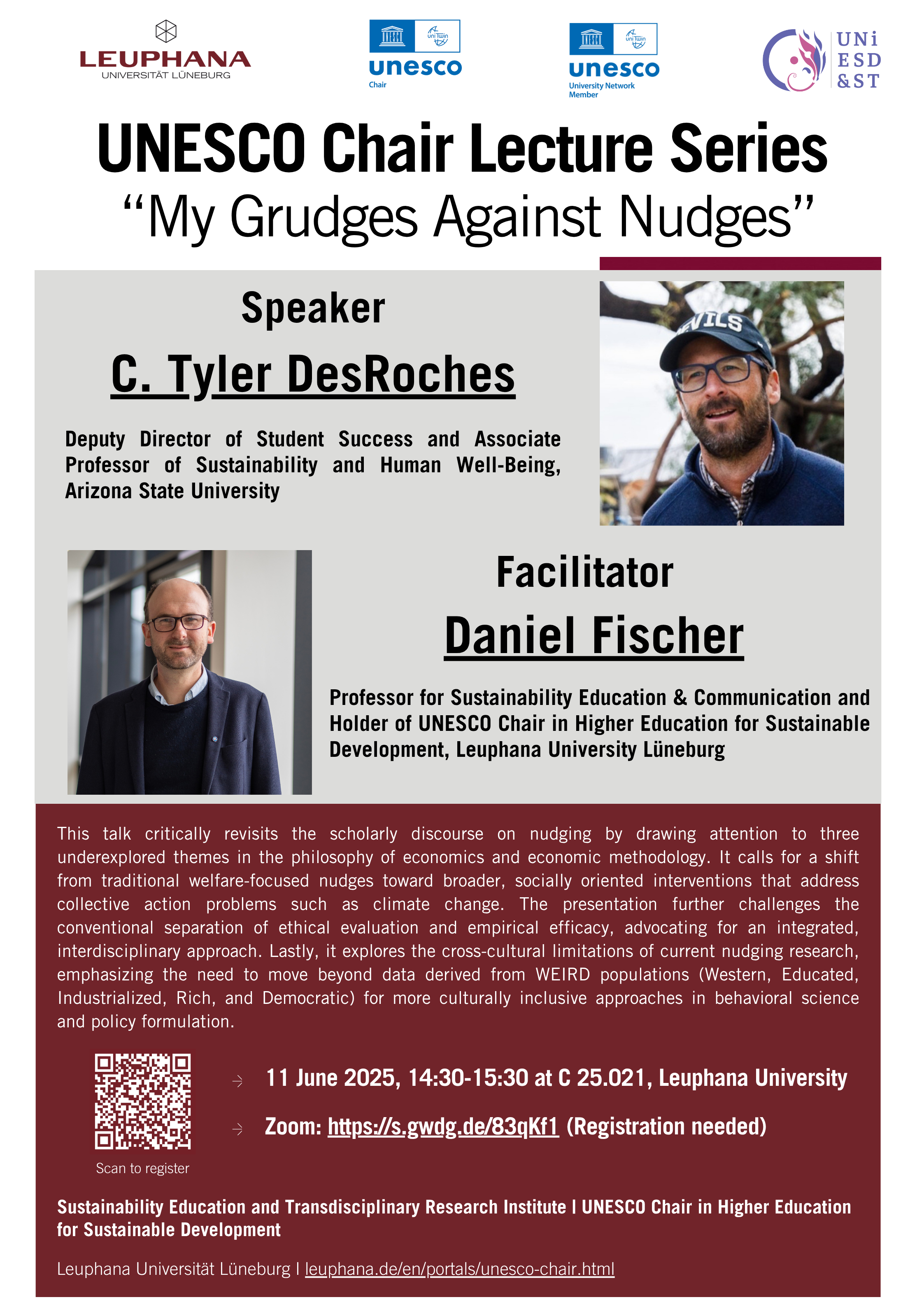 The UNESCO Chair in Higher Education for Sustainable Development, hosted at Leuphana University Lüneburg and SETRI, is pleased to invite you to the next event in its UNESCO Chair Lecture Series.