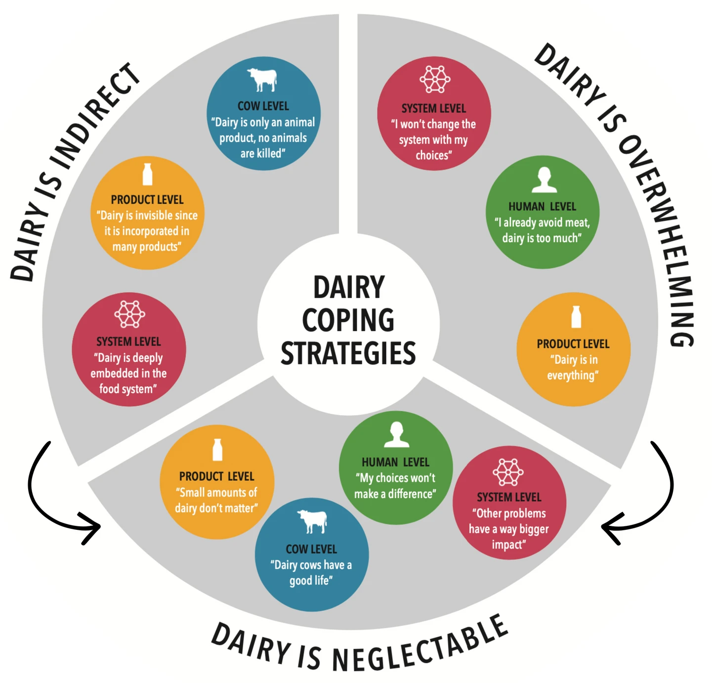 While meat consumption has long been scrutinized for its environmental and ethical costs, dairy often perceived as a more benign alternative also contributes significantly to greenhouse gas emissions and animal suffering. In this exploratory paper that is based on the Master thesis by the first author Sarah Kunze, we investigate how consumers reconcile their moral concerns with continued dairy consumption, using focus groups to identify the psychological strategies used to manage cognitive dissonance. We find that although dairy is generally framed more positively than meat, the coping mechanisms employed are strikingly similar—yet distinct enough to warrant a new category: neglectable. This term captures the idea that dairy’s harms are downplayed as unintentional, overwhelming, or simply too distant to confront.