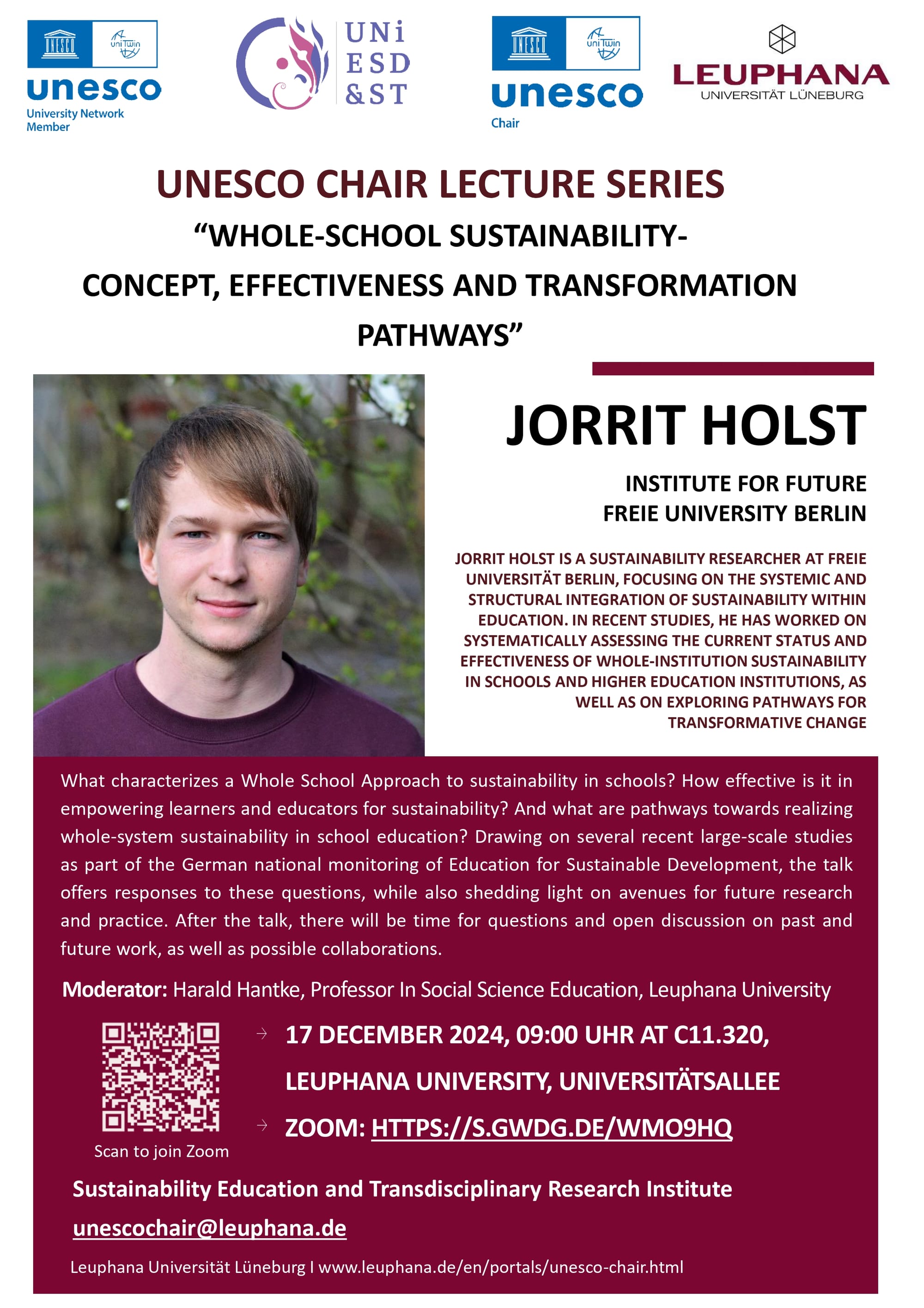 UNESCO Chair Lecture Series: Jorrit Holst on “Whole-School Sustainability: Concept, Effectiveness, and Transformation Pathways”